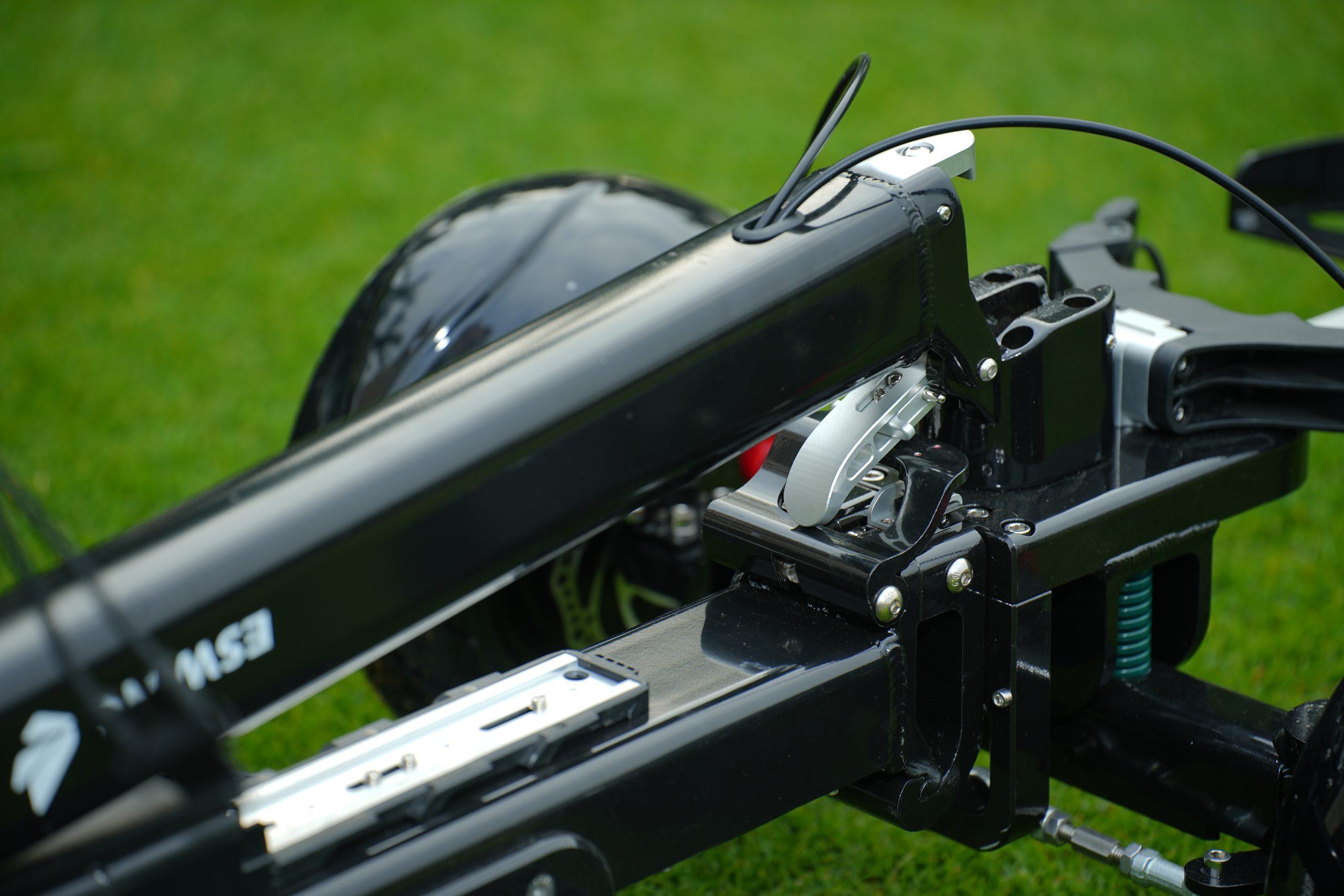 The Titan X separates into front and rear sections using a quick-release pin system. No tools required – simply pull the pins, separate the sections, and you have two manageable pieces instead of one heavy unit. Reconnection takes under 30 seconds.